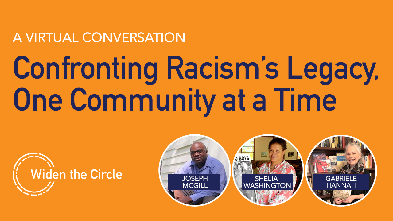 In this virtual event from Widen the Circle, Shelia Washington, founder of the Scottsboro Museum and Cultural Center; Joseph McGill, founder of the Slave Dwelling Project; and author, storyteller, Obermayer Award winner Gabriele Hannah discuss local history initiatives in the U.S. and Germany that teach about the legacy of racism and people who were victimized by it. They talk about how to use the lessons of the past—including the enduring legacies of white supremacy in the U.S. and anti-Semitism in Germany—to catalyze change, fight prejudice, and foster justice.